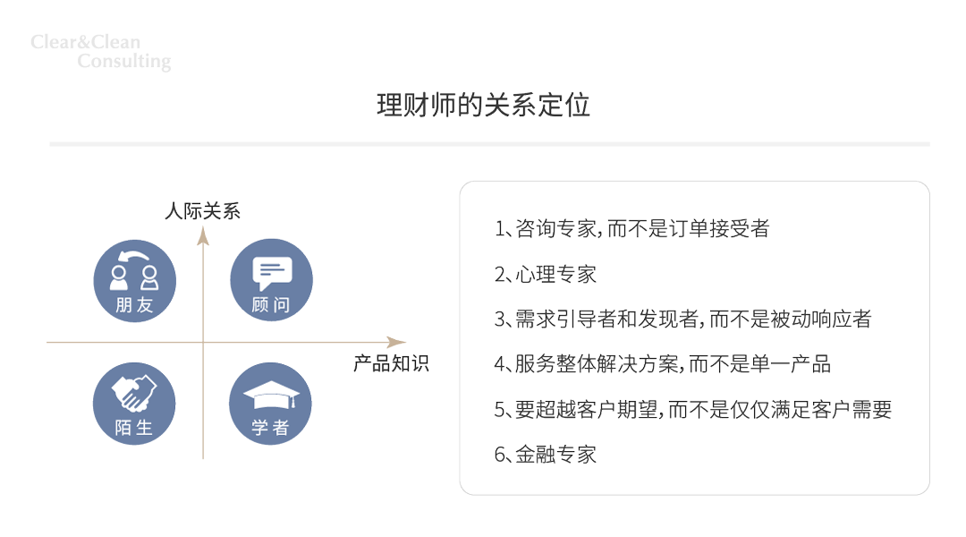 面对新特点,专业理财师需要提供新的服务价值,更好地满足理财消费者的新需求,未来理财师将是咨询专家、心理专家、需求引导者和发现者、金融专家……