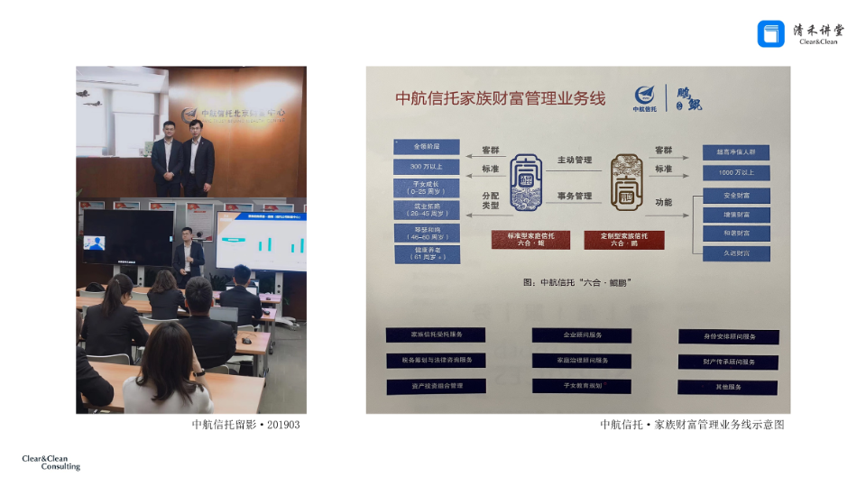 课后杜老师参访、学习了中航信托职场设置、宣传物料设计等诸多细节,并调研了中航信托家族财富管理模式与实务。