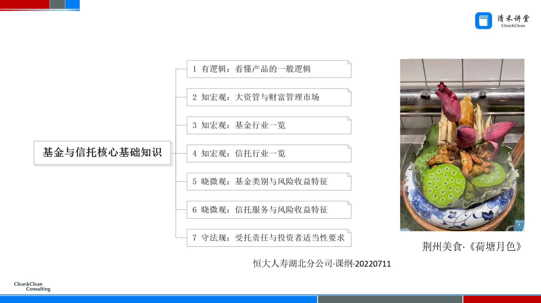 2022年7月11日,杜老师在恒大人寿湖北分公司半年会上讲授《基金与信托核心基础知识》专题课程,助力恒大人寿开展银保业务。