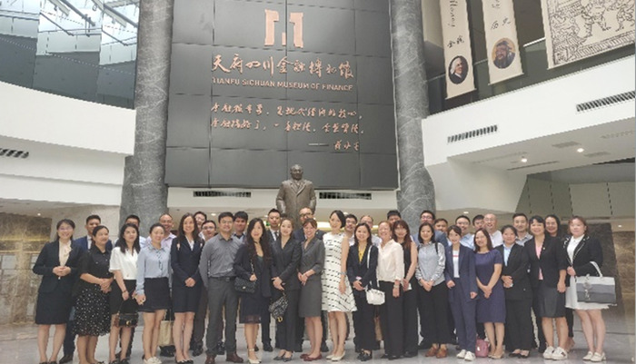 2020年8月6日,在四川天府金融博物馆,杜老师与博物馆讲解老师一同为成都、重庆等地理顾讲解博物馆各个展区,涵盖货币的演进、红色金融等主题。