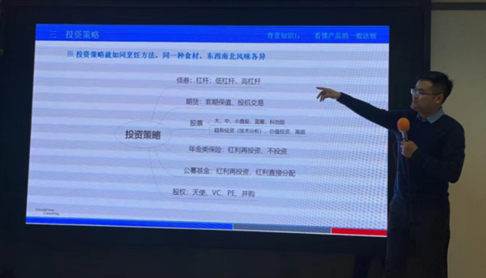 2022年2月28日,杜老师走进华夏保险北京分公司,讲授《讲清理财产品的一般法则》主题课程,课程中依次讲解了表达与证实的逻辑、常见讲解途径的措辞逻辑与示例、不同讲解目的的措辞逻辑与示例等章节。并在课中,分享了《保险资金多少比例可以投资权益类资产》专题,帮助理财顾问搞清保险是如何赚钱的、为何说保险理财的盈利机会越来越多等问题。